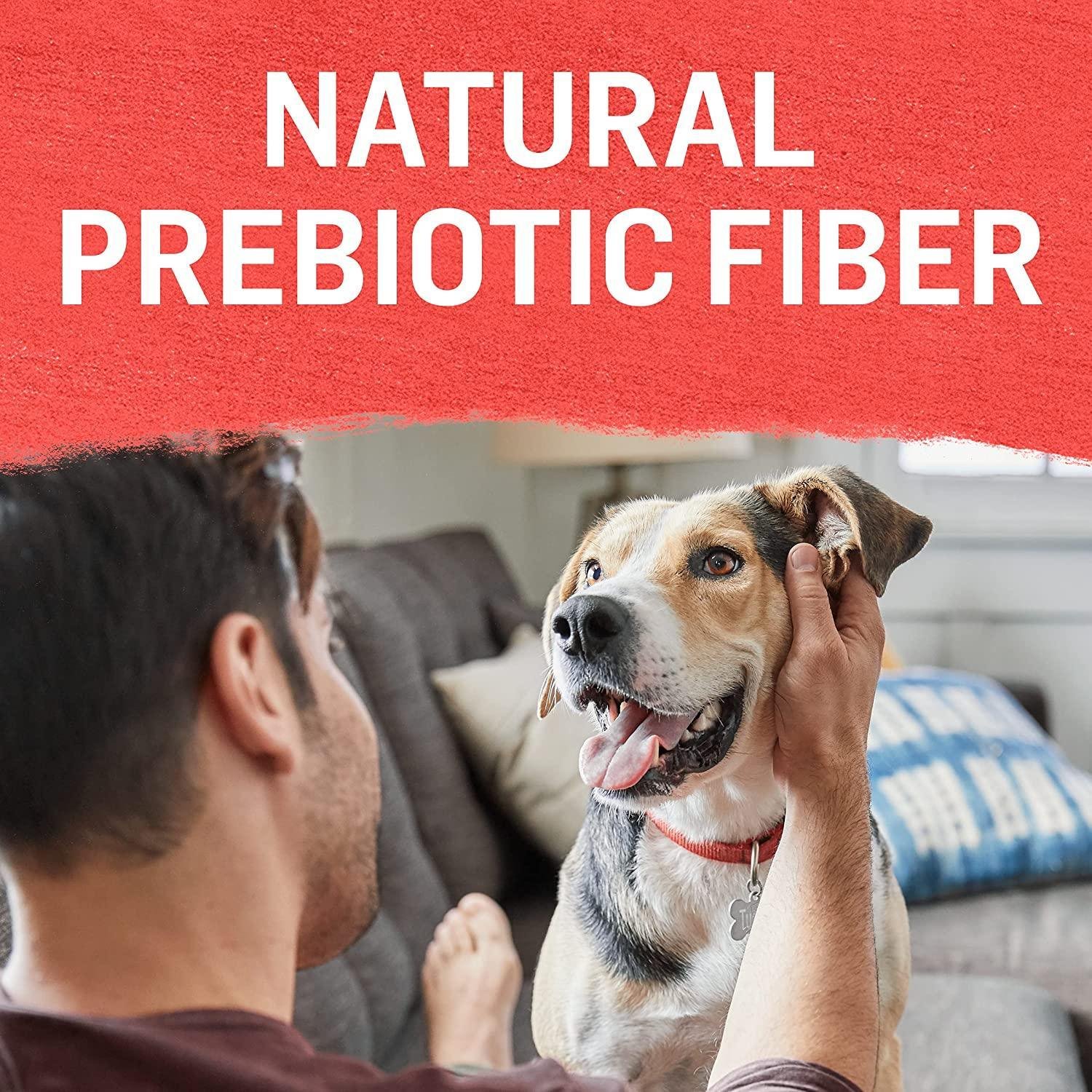 Grain free wet dog food includes natural prebiotic fiber and is accented with real veggies and made with no corn, wheat, soy, poultry-by-product meal, or artificial colors, flavors or preservatives